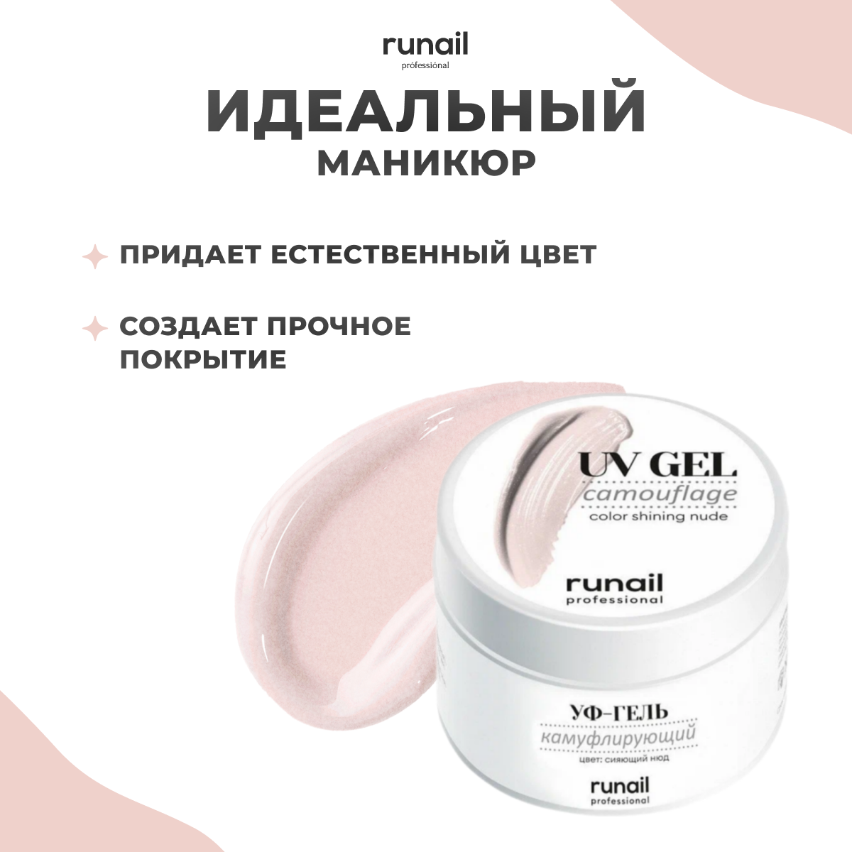 RUNAIL, Камуфлирующий УФ-гель, фарфоровый блеск, 15 г