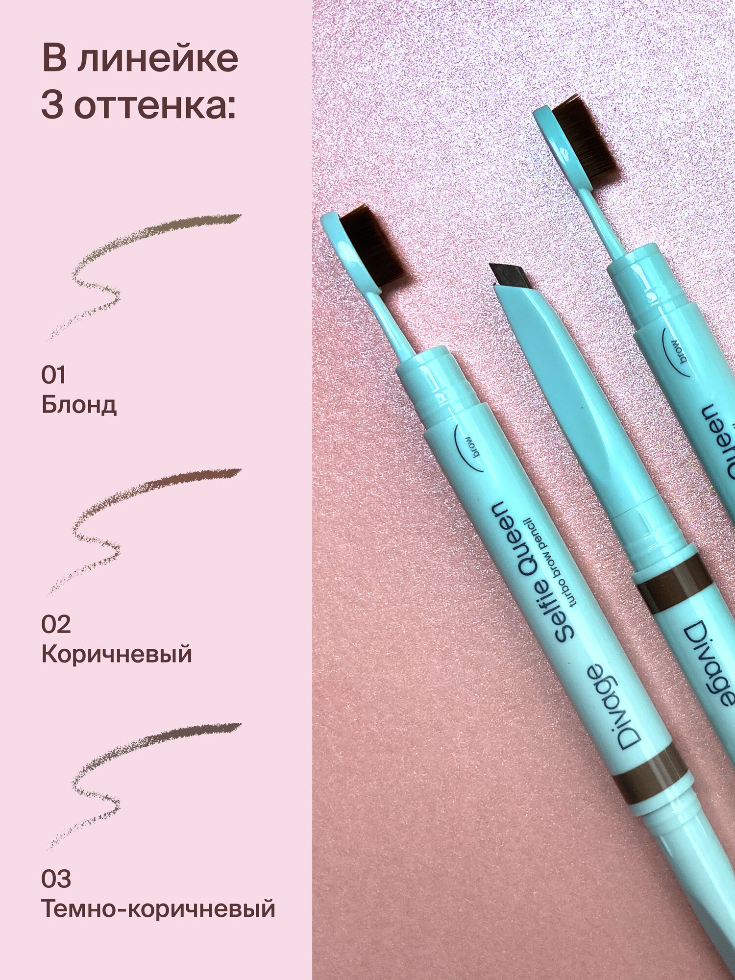 Divage / Диваж Карандаш для бровей Selfie Queen Turbo 02 для любого типа кожи с 18 лет коричневый с щеточкой 3г / декоративная косметика