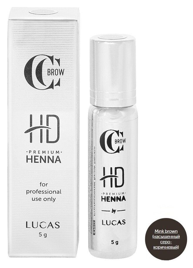 LUCAS Хна для бровей Premium henna HD, CC Brow, 5 г, Mink brown (насыщенный серо-коричневый)