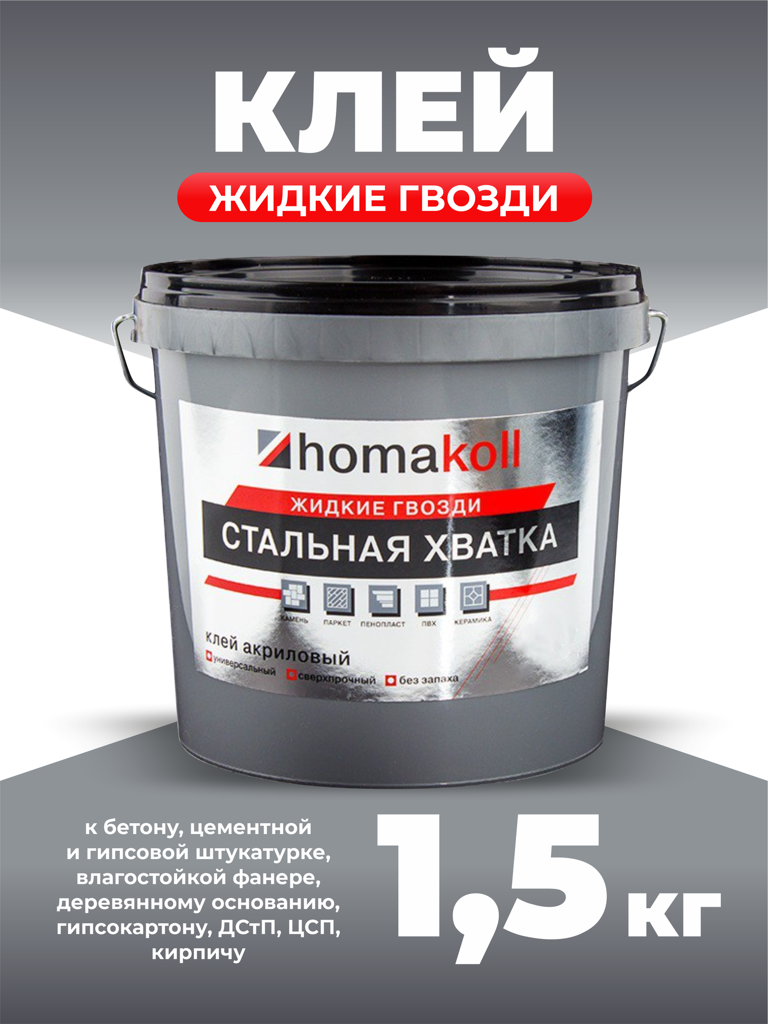 Универсальный монтажный клей жидкие гвозди Homakoll "Стальная хватка", 1,5 кг