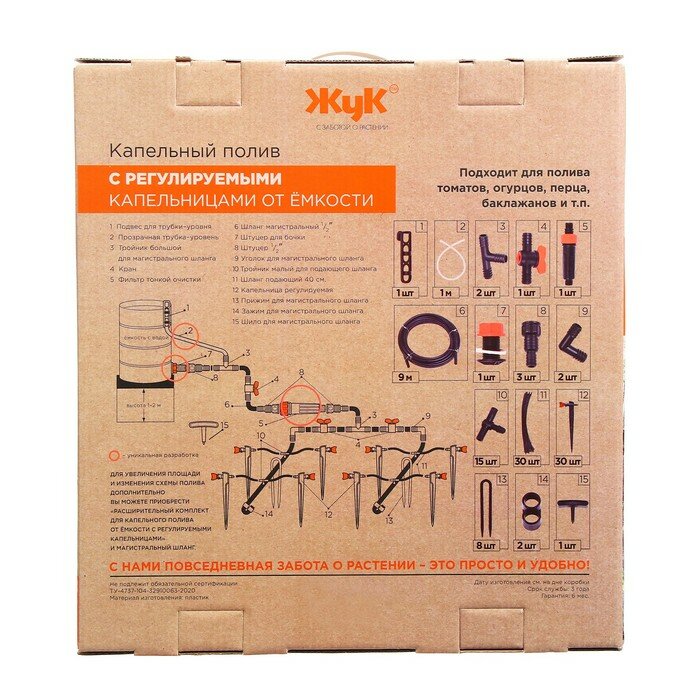 Набор капельного полива от емкости, с регулируемыми капельницами, 30 растений, "Жук" интересное: