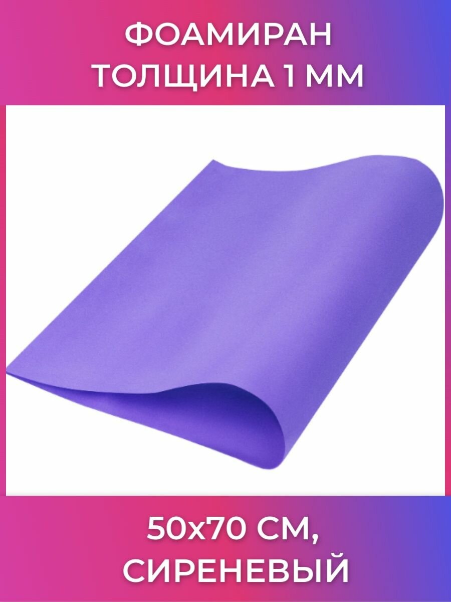Пористая резина (фоамиран) для творчества, сиреневая, 50х70 см, 1 мм, остров сокровищ