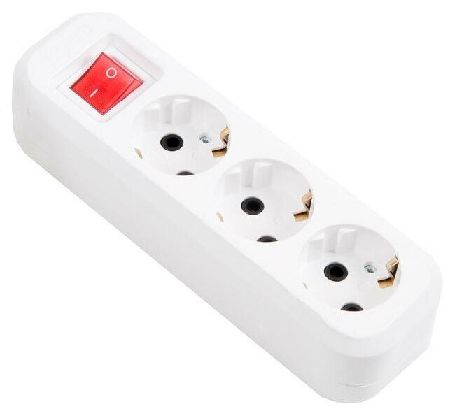 Колодка на 3 гнезда с выключателем c заземлением белая / Колодка на 3 гнезда с выключателем с заземлением белая