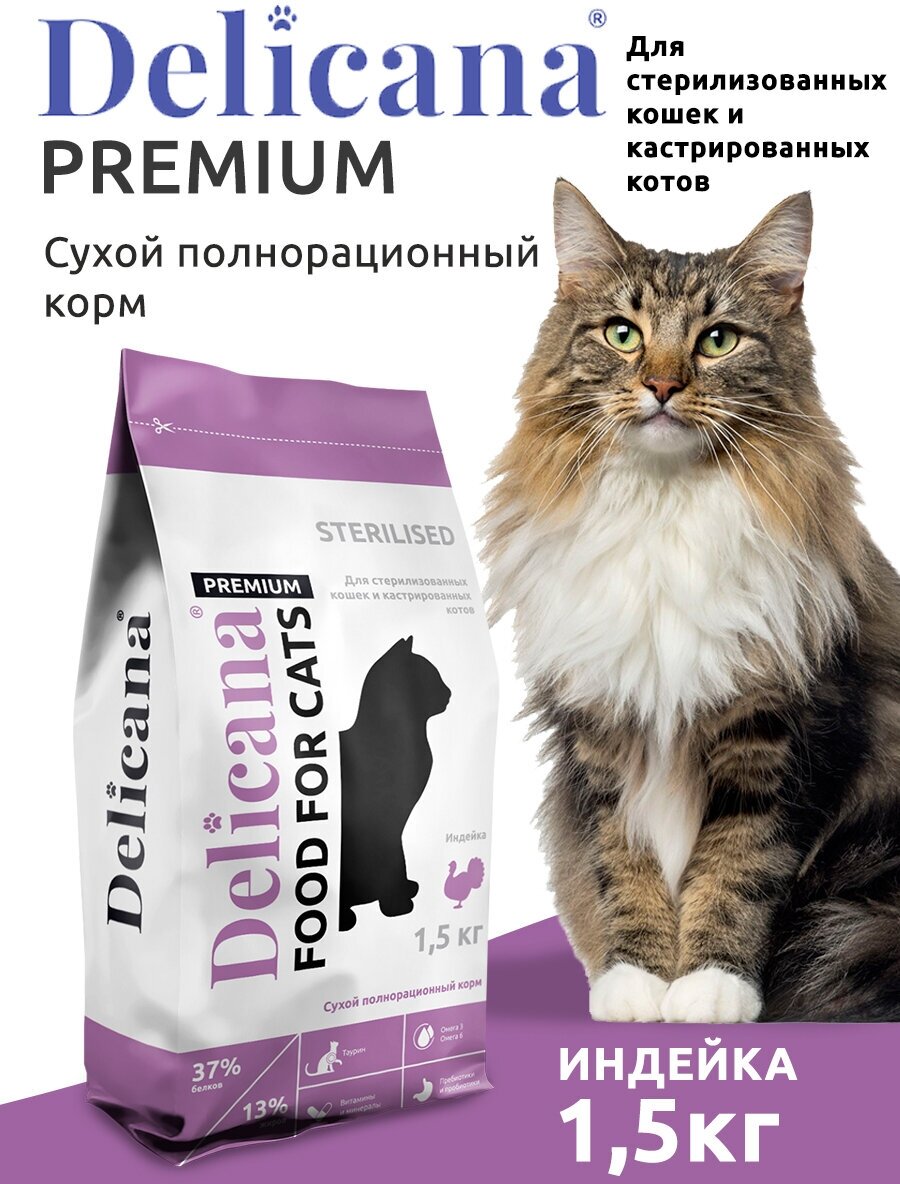 DELICANA сухой корм для кастрированных и стерилизованных кошек, индейка 1,5кг.