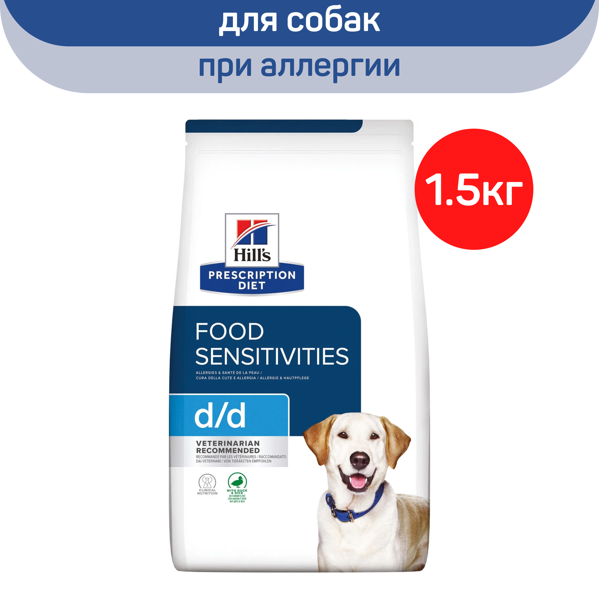Сухой корм для собак Hill's d/d при аллергии, заболеваниях кожи и неблагоприятной реакции на пищу, с уткой и рисом, 1,5кг