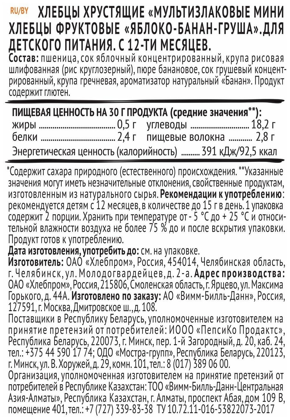 Купить Мини-хлебцы Агуша Полезный Перекус Мультизлаковый Яблоко-Банан-Груша с 12 месяцев, 30г