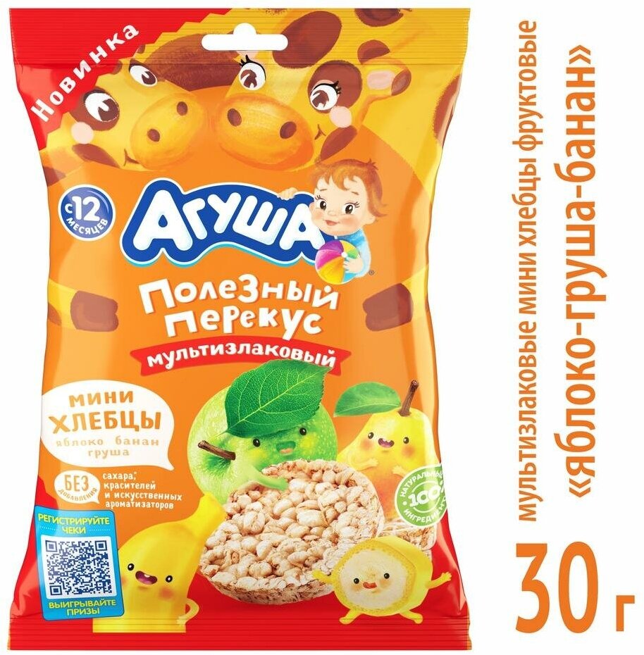 Мини-хлебцы Агуша Полезный Перекус Мультизлаковый Яблоко-Банан-Груша с 12 месяцев, 30г интересное: