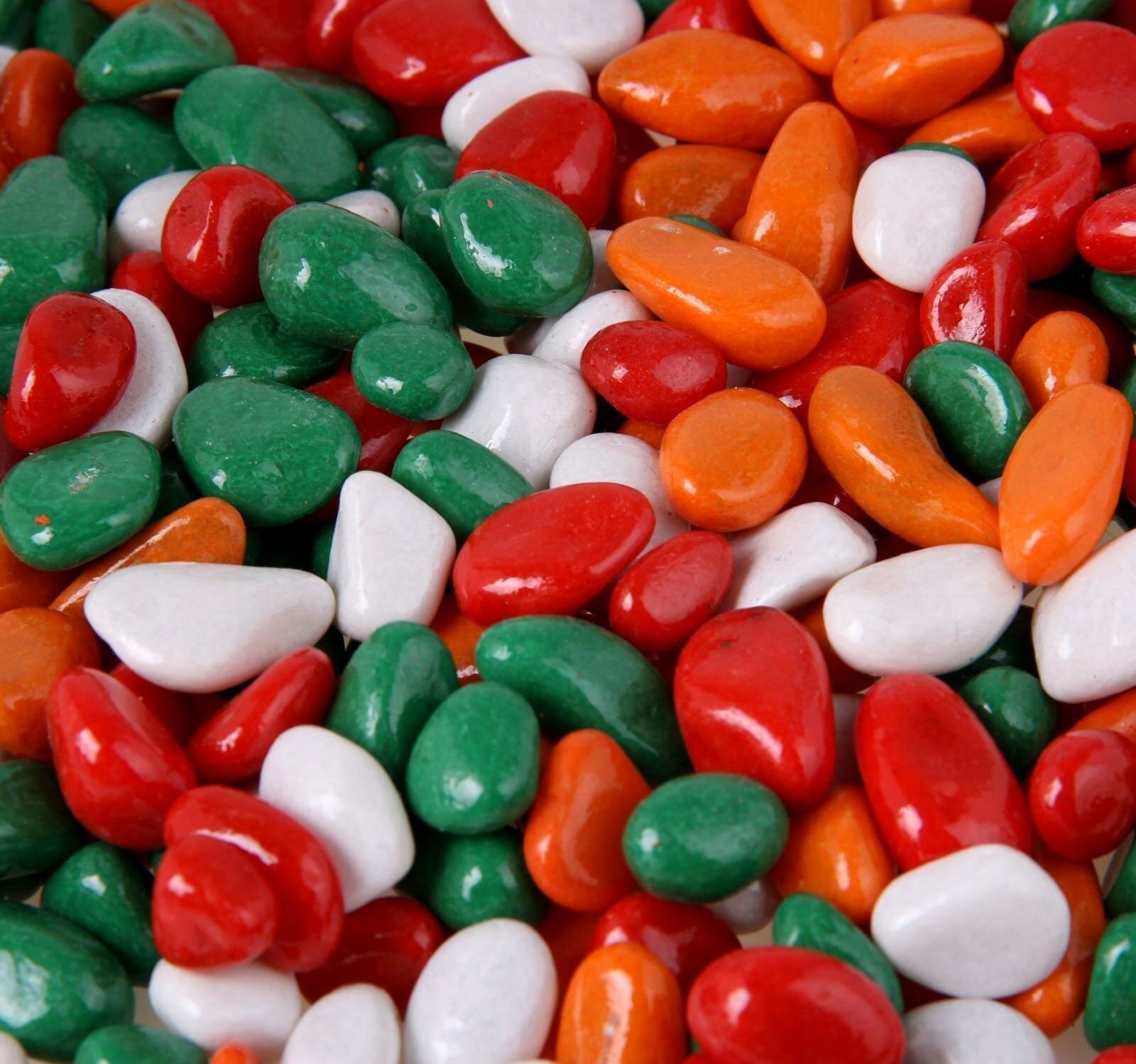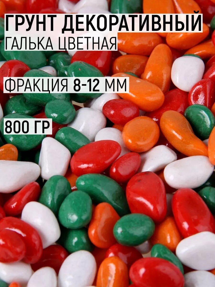 Грунт для аквариума "Галька цветная, зеленый-рыжий-красный-белый" 800г фр 8-12 мм./ В упаковке: 1