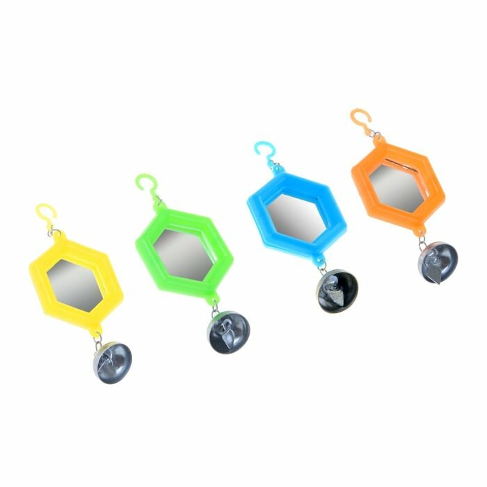 Купить Бриллиант Игрушка для птиц зеркало с металлическим колокольчиком №2 микс цветов