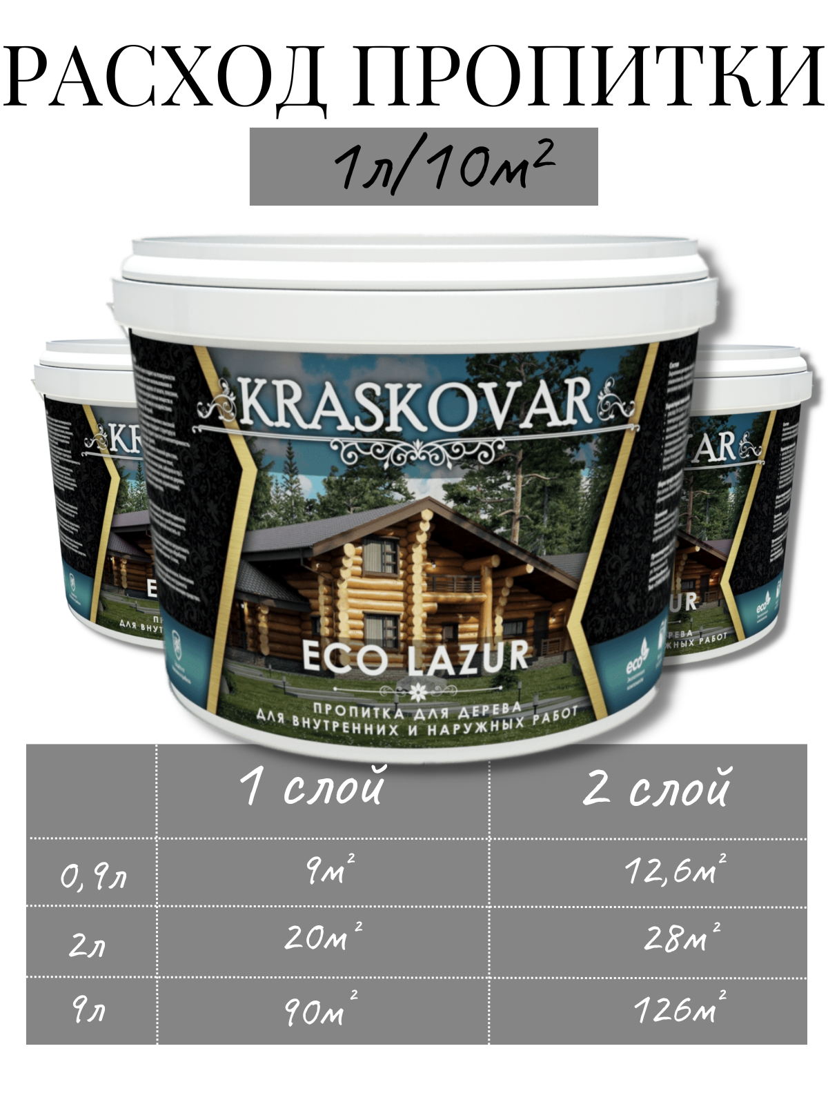 Пропитка для дерева Kraskovar Eco Lazur, бесцветный 9л