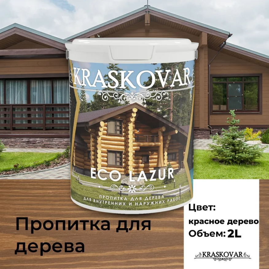 Купить Пропитка для дерева Kraskovar Eco Lazur, красное дерево 2л