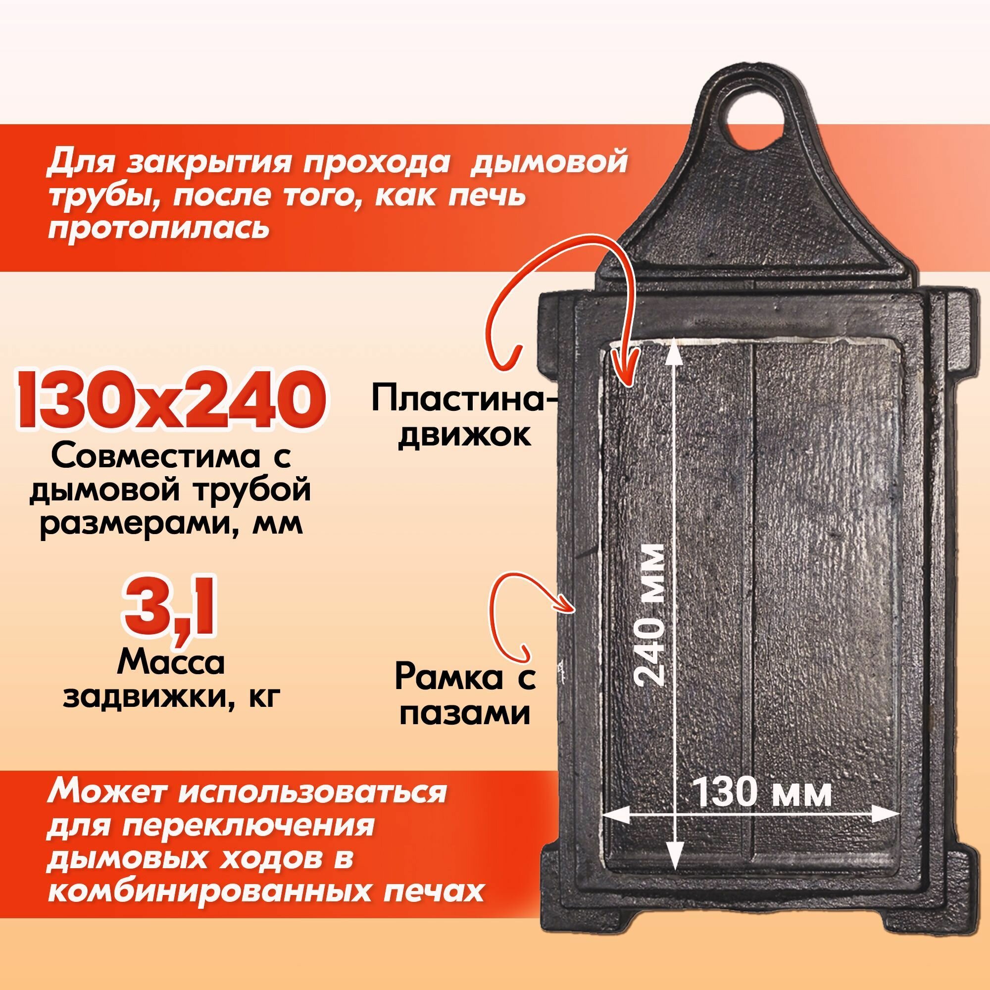 Задвижка печная чугунная 280х190 мм (ЗВ-1) Бисерский Литейный Завод