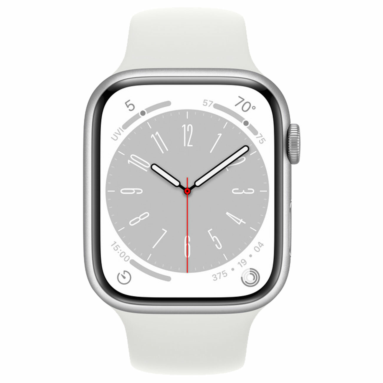 Apple Watch 8 GPS Silver Aluminum Case with White Sport Band 45mm M/L