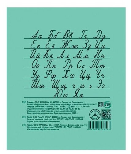Тетрадь школьная А5,18л,линия,10шт/уп зелёная Маяк Т5018 Т2 ЗЕЛ1Г