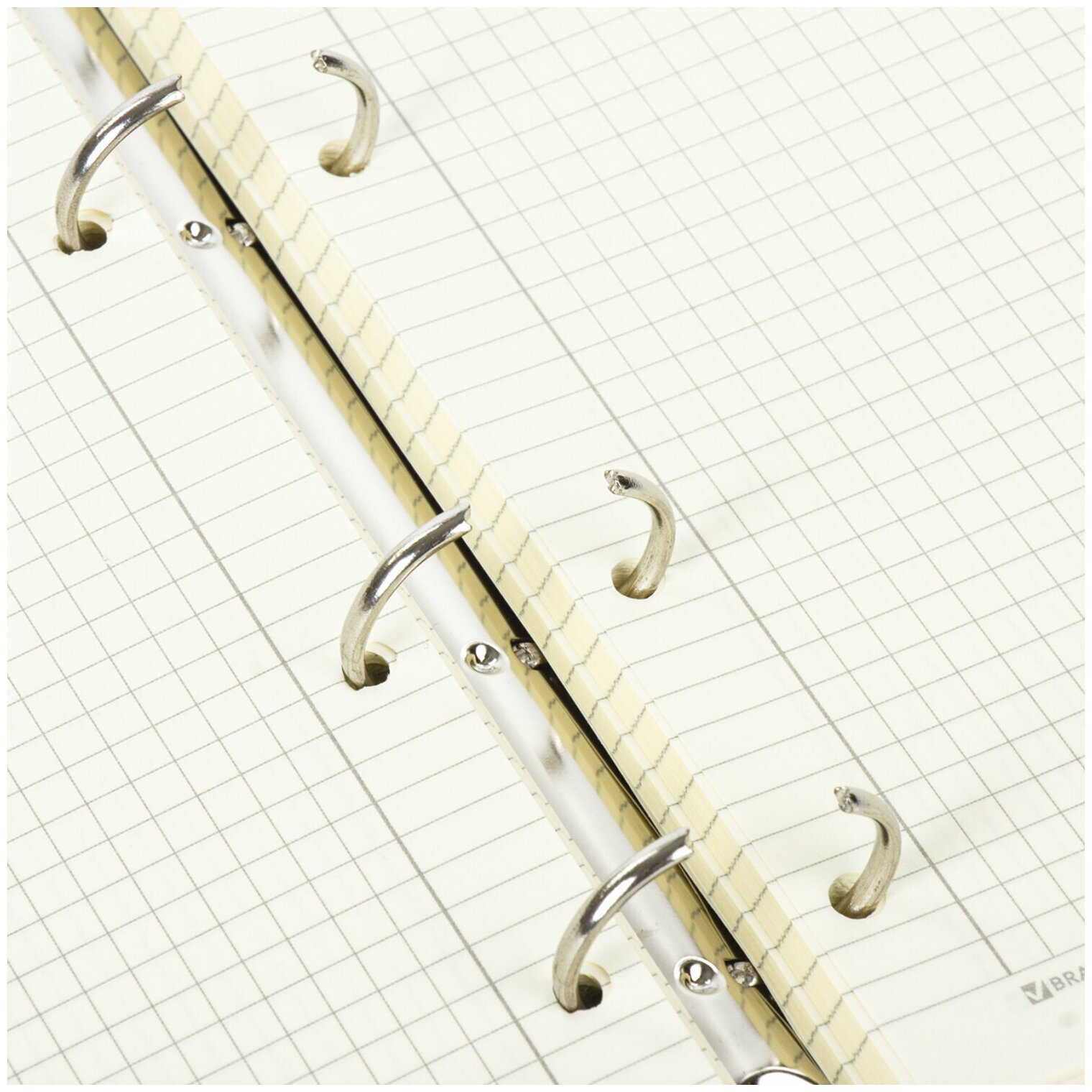 Тетрадь на кольцах BRAUBERG А5 (180х220 мм), 120 л., под гладкую кожу, вырубка под кольца, кремовый блок, "Main", клетка, черная