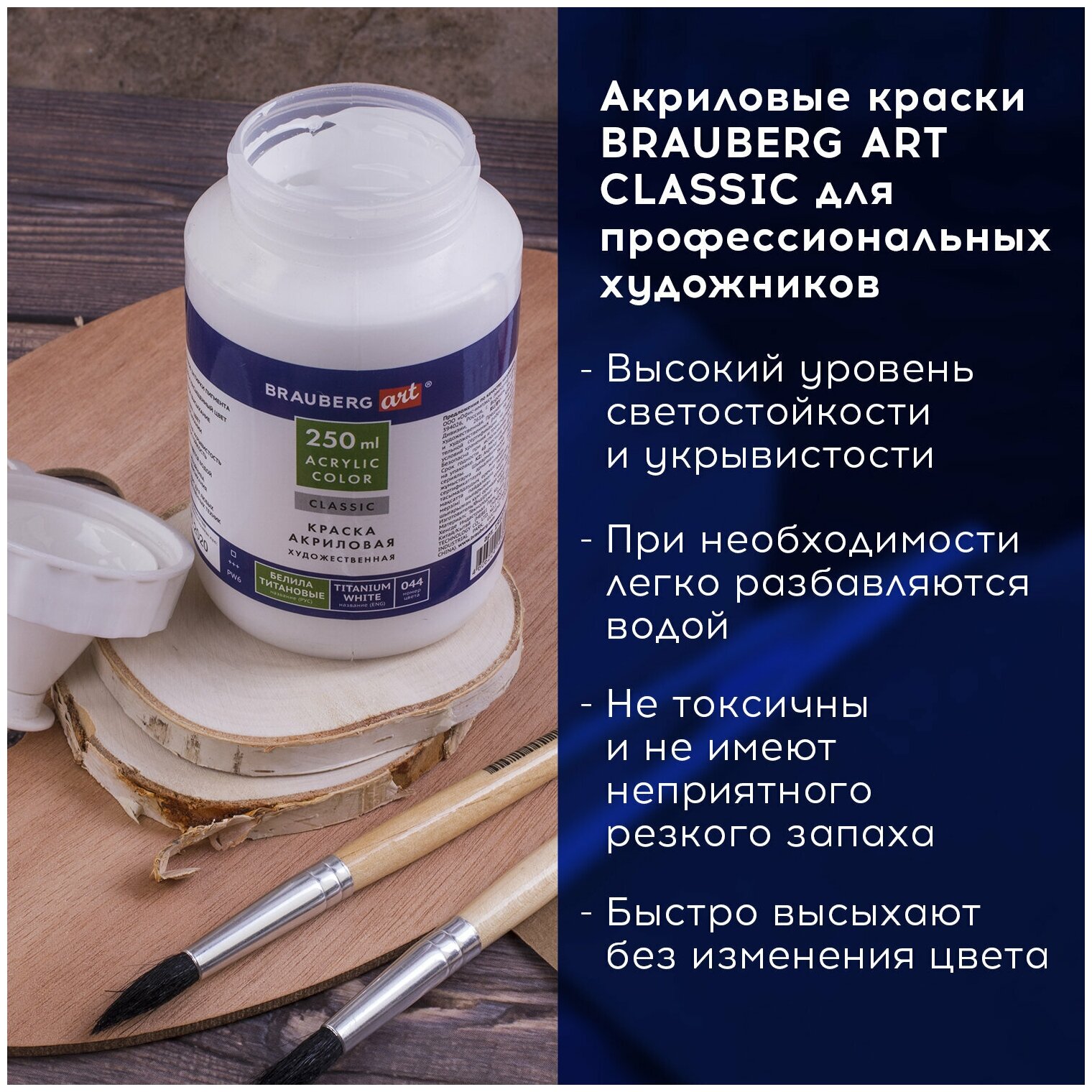 Краска акриловая художественная BRAUBERG ART CLASSIC, флакон 250мл, белила титановые, 191072