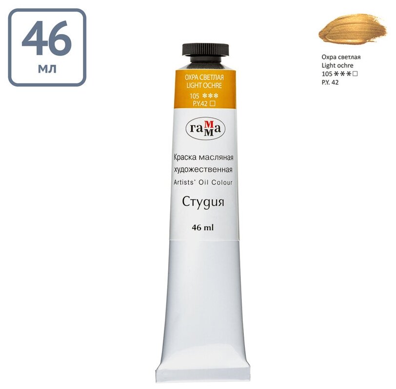 Купить Краска масляная художественная Гамма "Студия", 46 мл, туба, охра светлая (0.00.А046.105)