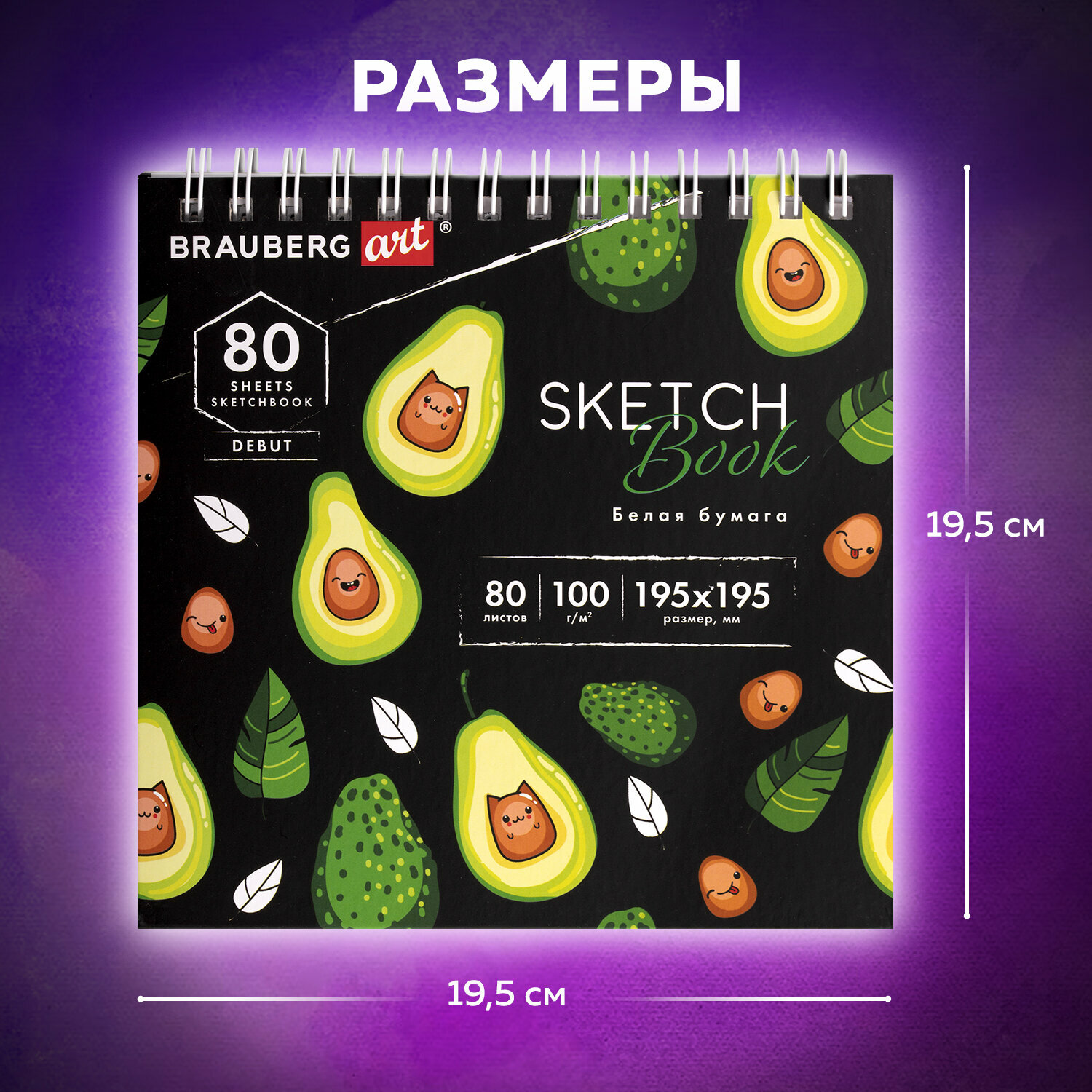 Скетчбук белая бумага 100 г/м2 195х195 мм, 80 л., гребень, твердая обложка, BRAUBERG ART DEBUT, 112986 В комплекте: 1шт.