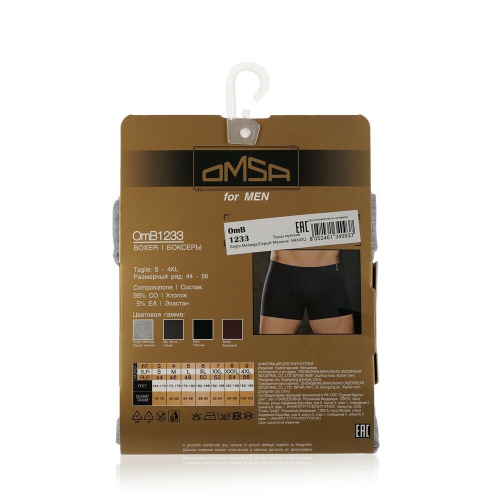 Трусы мужские Omsa OmB 1233 боксер (1 шт), размер XL, grigio melange (Серый)