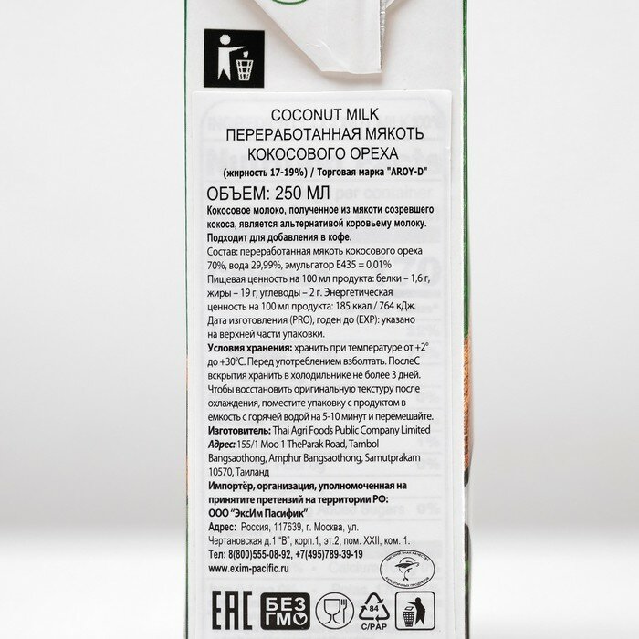 Молоко Aroy-D кокосовое 70%, жирность 17-19%, 500 мл