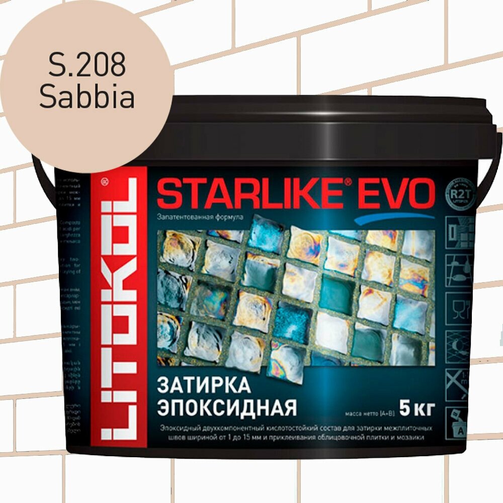 Затирка для плитки двухкомпонентная на эпоксидной основе Litokol Starlike EVO (5кг) S.208 sabbia