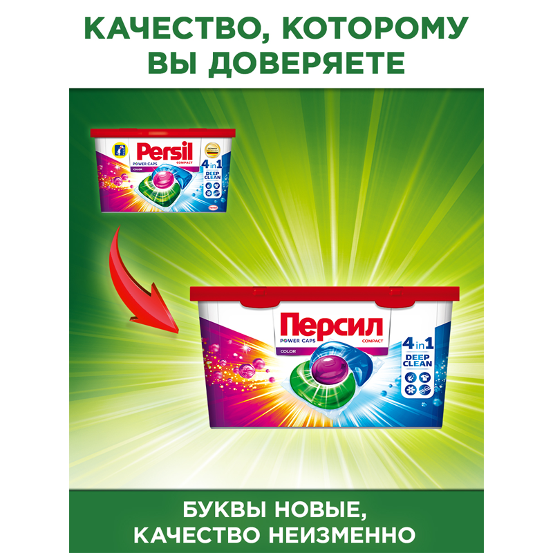 Капсулы для стирки Персил Power Caps Color 4 in 1, контейнер, 28 капсул