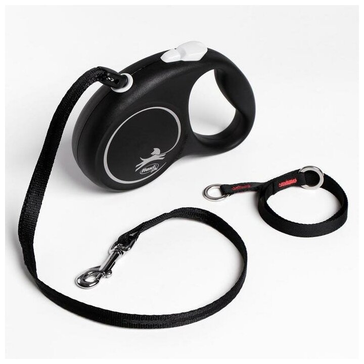 Поводок-рулетка для собак Flexi Black (S) 5 м./до 12 кг. (черный/серебро, лента)