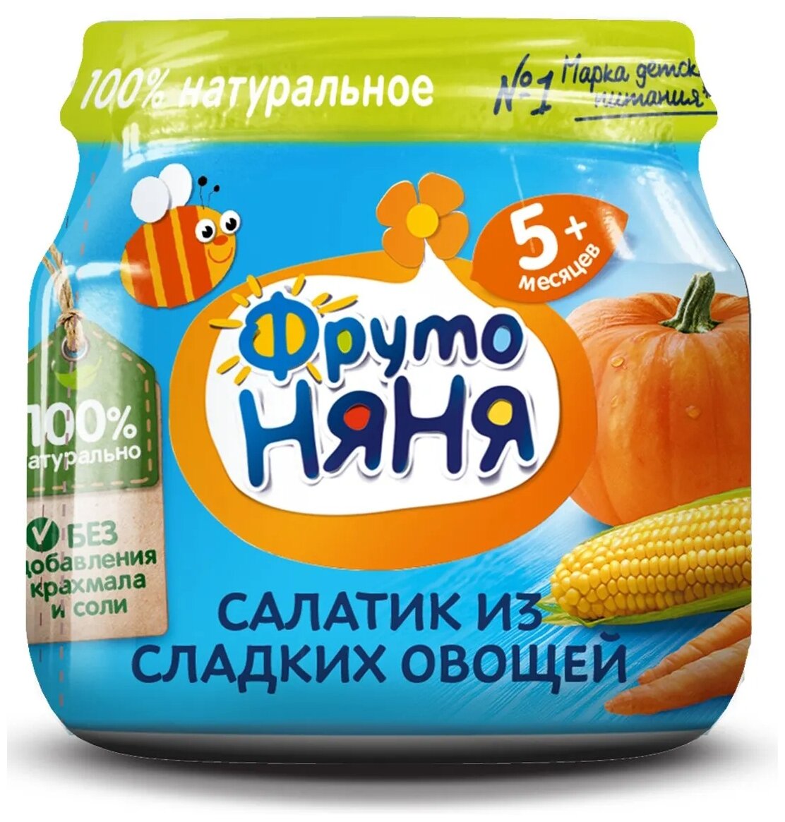 Спайка Пюре ФрутоНяня кукуруза, тыква, морковь - салатик из сладких овощей, 80г (12 шт) интересное: