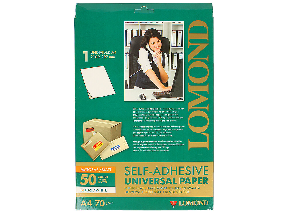 Бумага Lomond 2100001 Самоклеящаяся бумага LOMOND универсальная для этикеток, A4, (210 x 297 мм), 70 г/м2, 100 листов