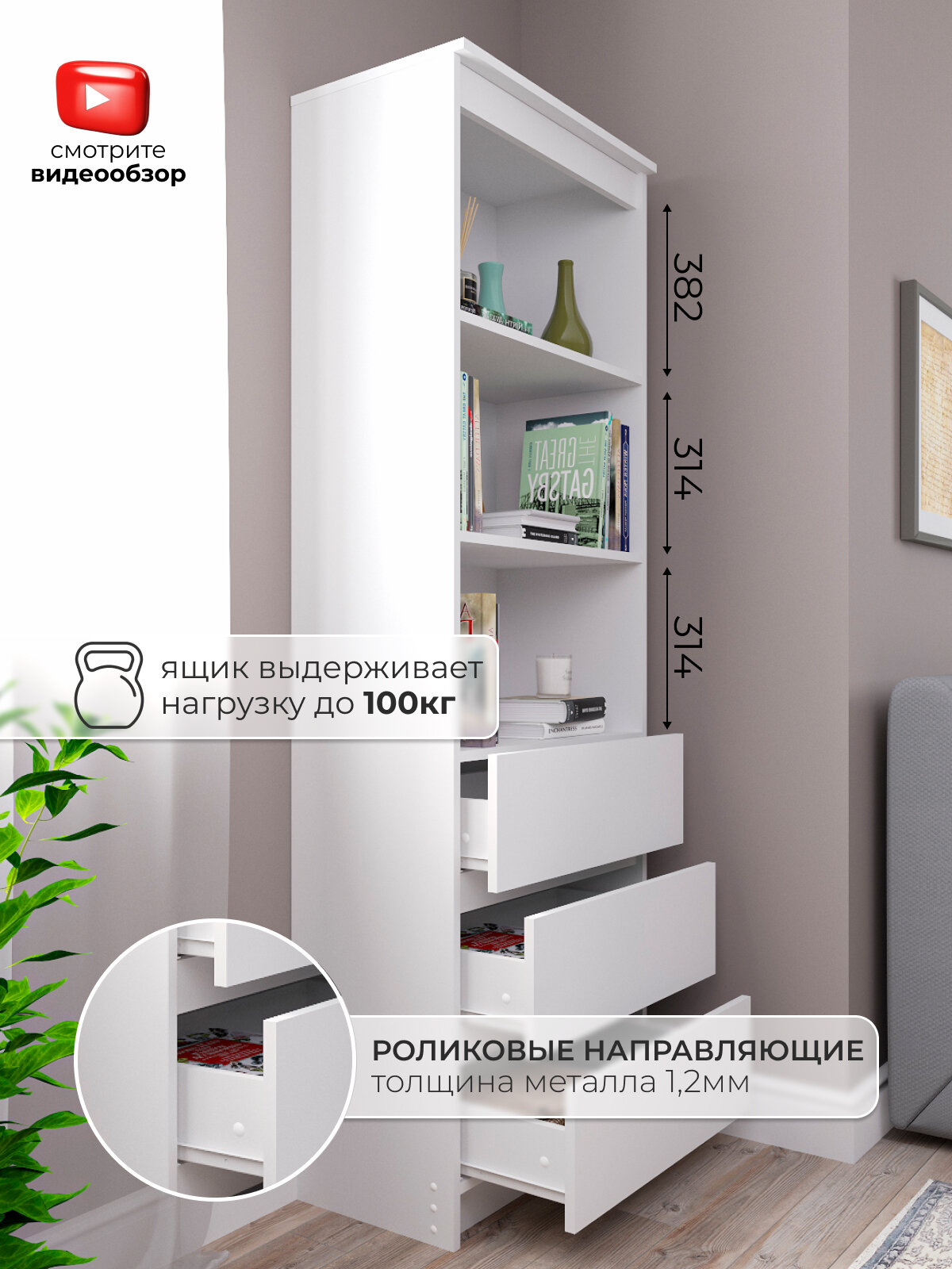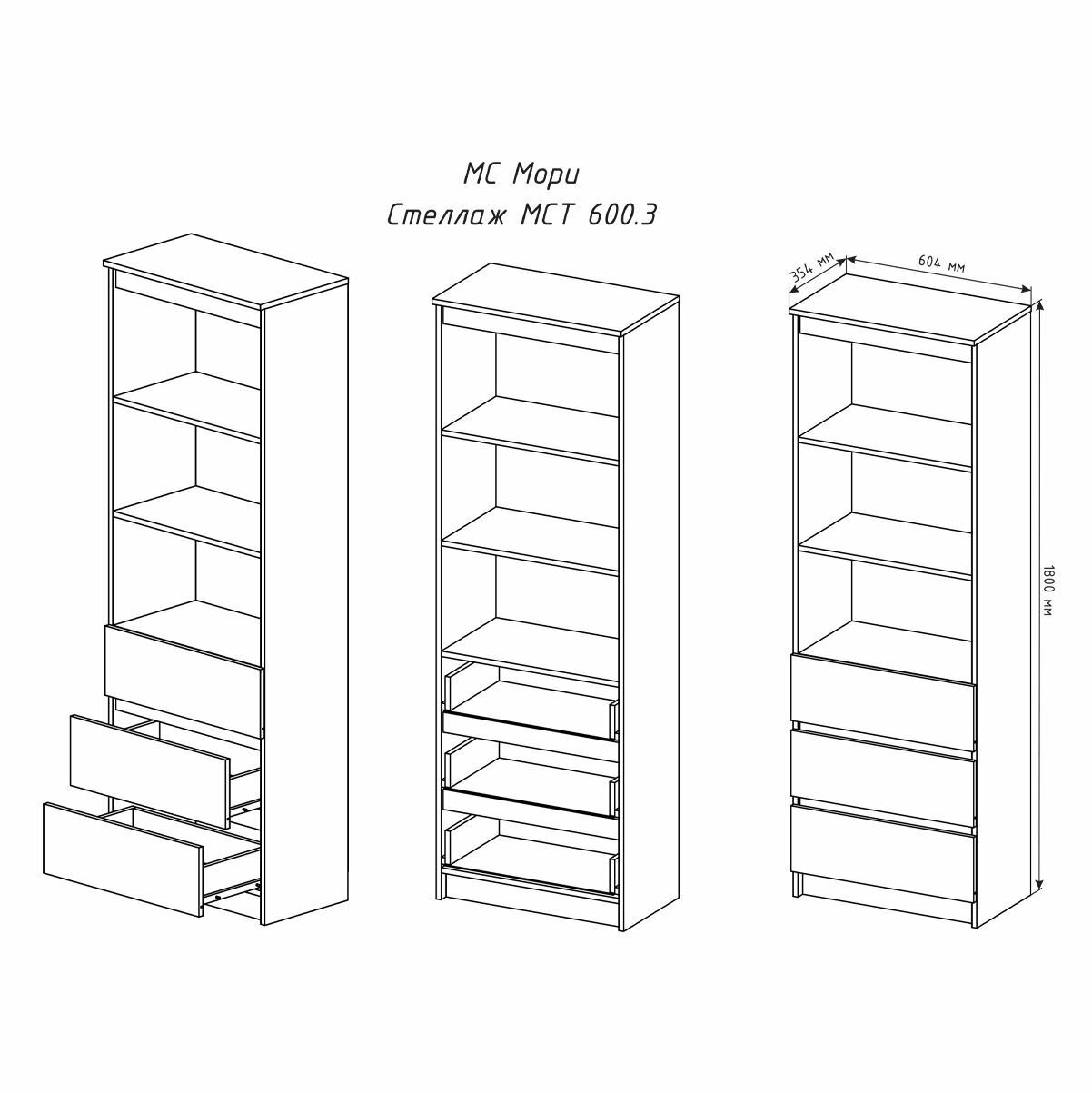 СохранитьСтеллаж ДСВ мебель Мори МСТ 600.3, материал: ЛДСП, ШxГxВ: 60.4х35.4х180 см, белый интересное: