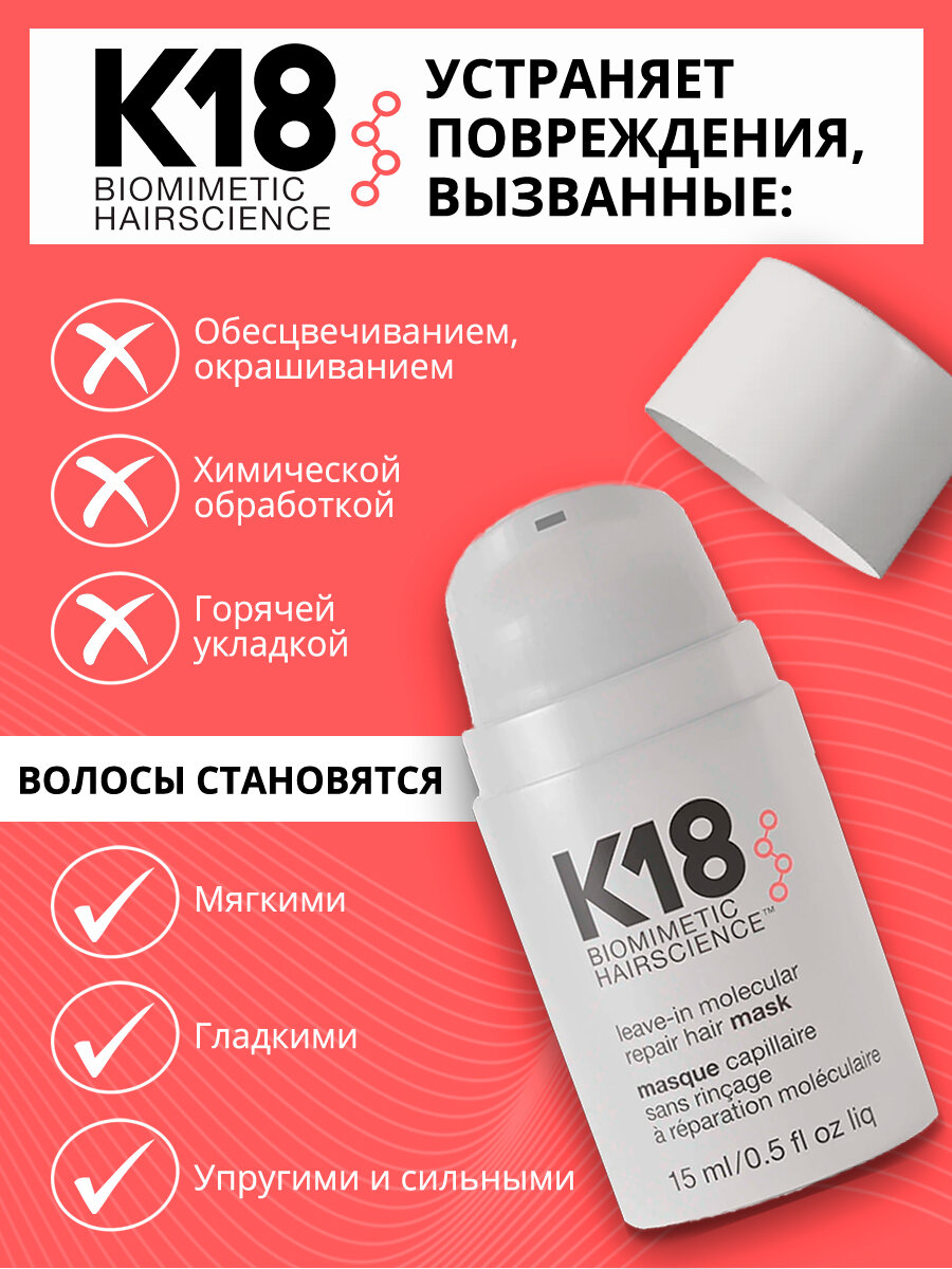 Несмываемая маска K-18 для молекулярного восстановления волос, 15 мл