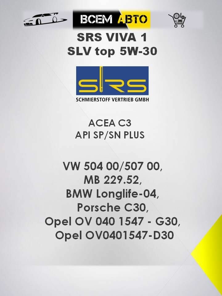 Масло моторное SRS VIVA 1 SLV top 5W30, 504/507, 4 литра 22780
