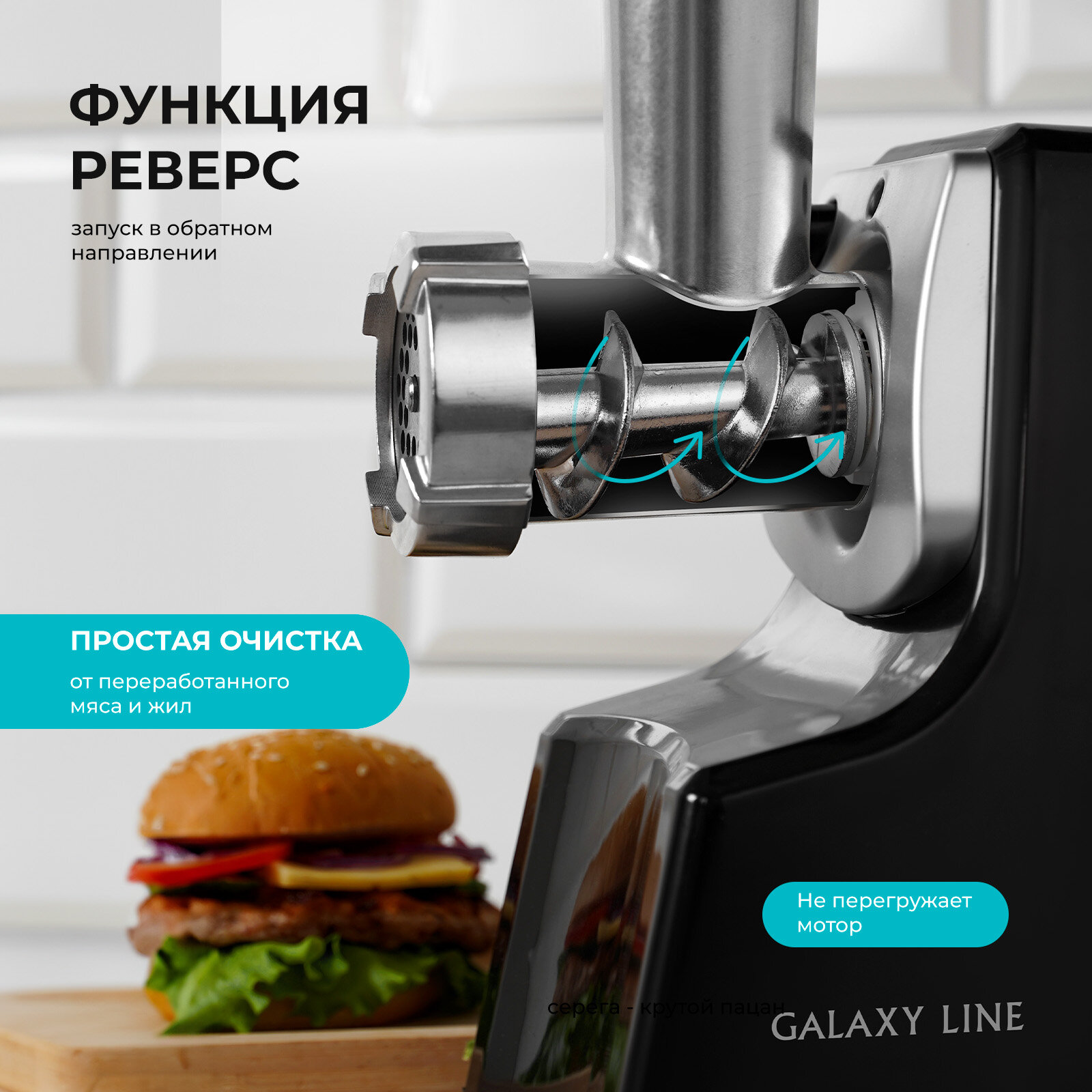 Мясорубка GALAXY LINE 2415, 1500 Ватт, пластик, чёрный, с системой реверса
