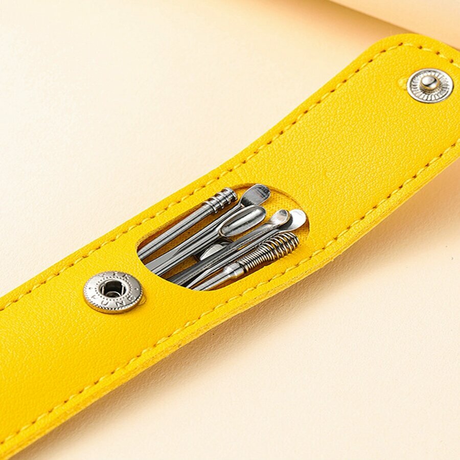 Купить Набор для чистки ушей,Ухочистка ,Ушная палочка металлическая,мимикаки 6 предметов в желтом подарочном футляре