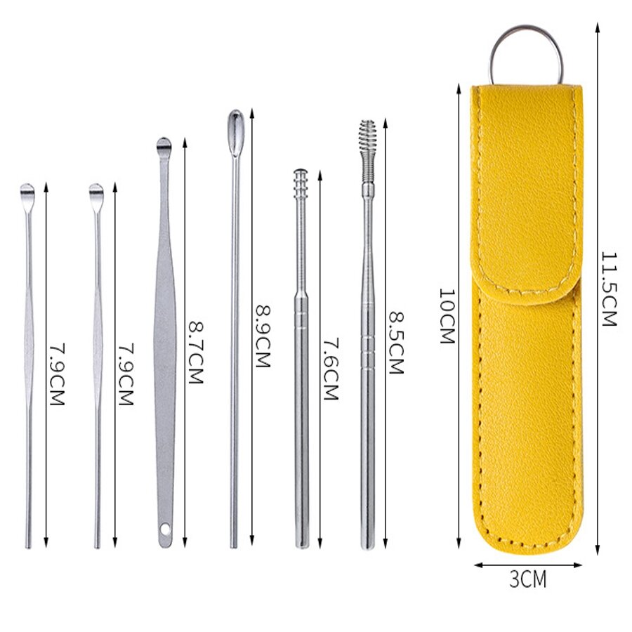 | Комплектация | Комплект для чистки ушей с 6 предметов из медицинской углеродистой стали |