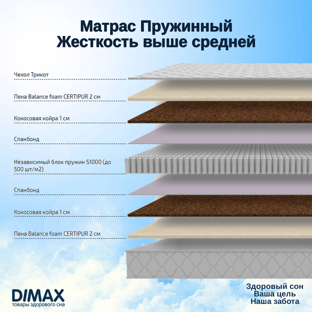 Матрас Dimax Оптима 500 Кокос, 165x195 см, пружинный