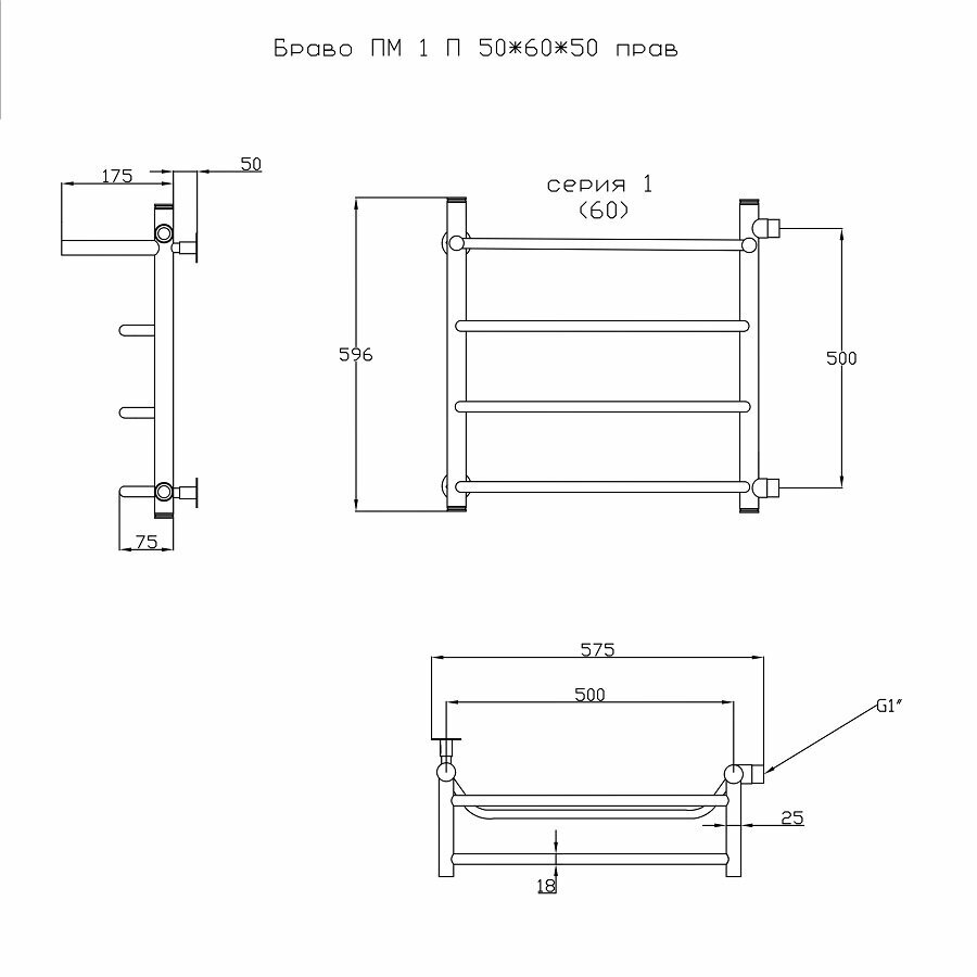 Полотенцесушитель Браво ПМ 1 П 50*60*50 прав