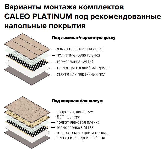 Пленочный теплый пол CALEO PLATINUM 50/230-0,5-2,0 кв.м.