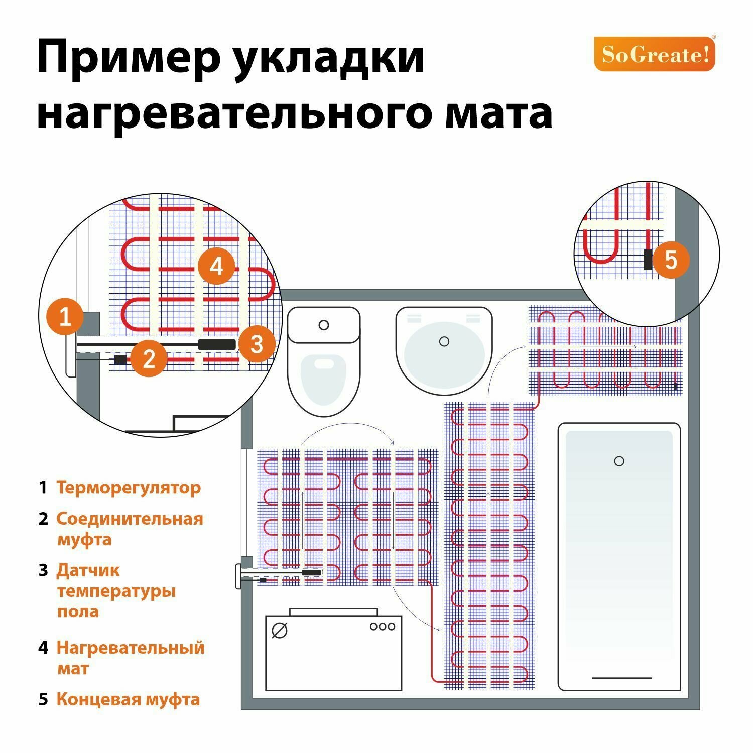 Теплый пол ЧТК. Мат нагревательный SoGreate! 0,5кв.м. 80Вт.