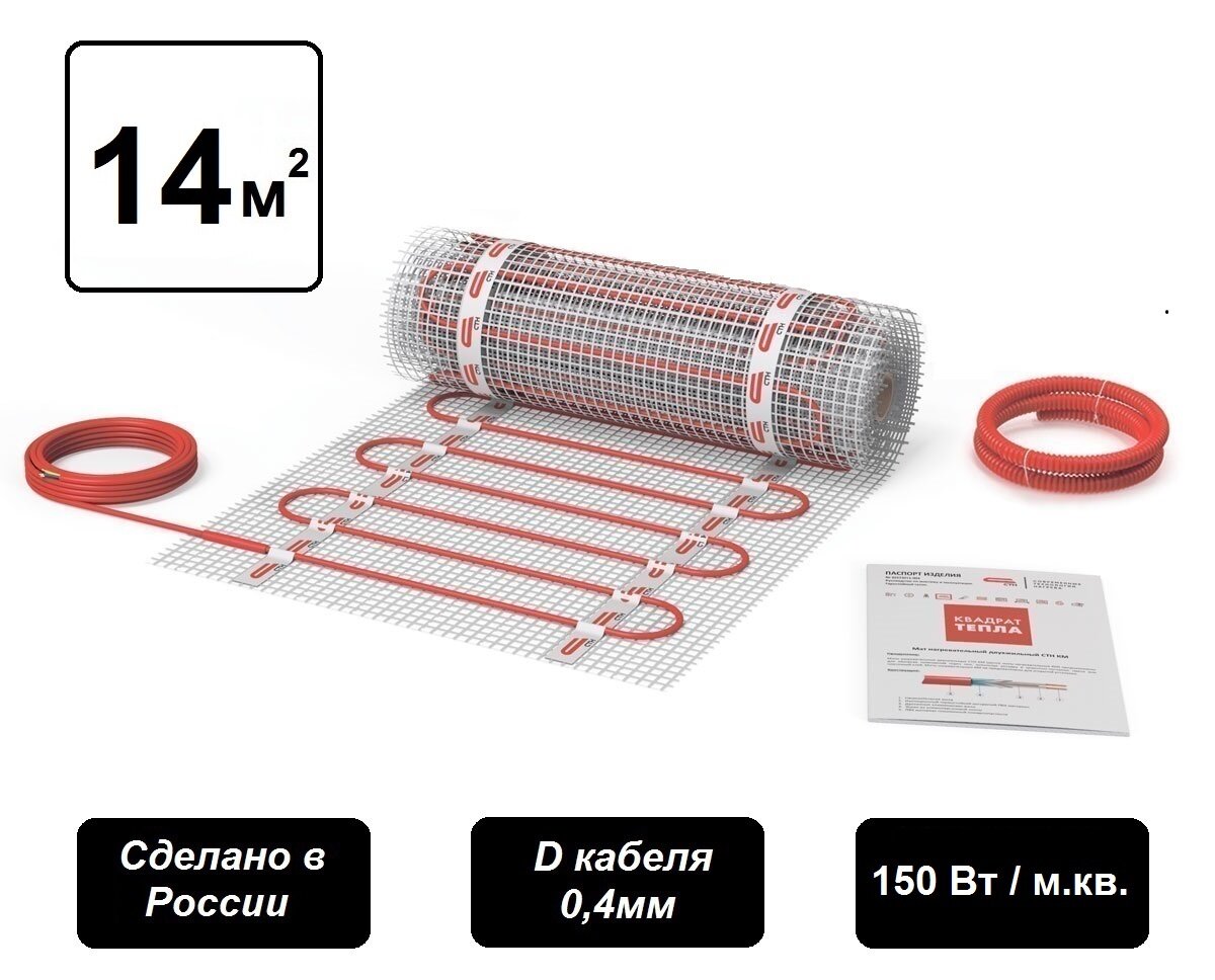 Теплый пол СТН "Квадрат тепла" СТН КМ, 2100 Вт, 14,0 м2 (Электрический нагревательный мат)