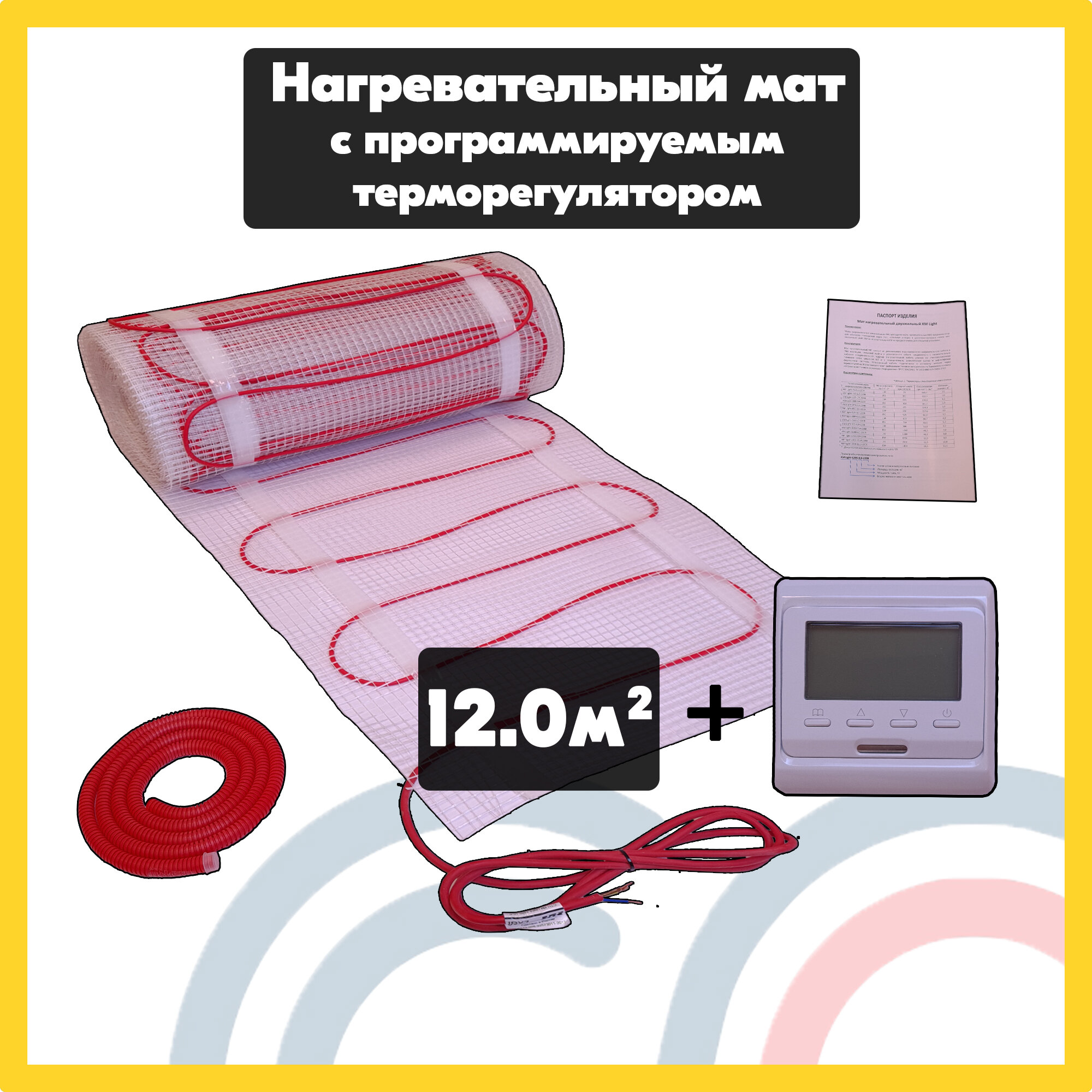 Теплый пол под плитку KM Light 12 м2 c программируемым терморегулятором
