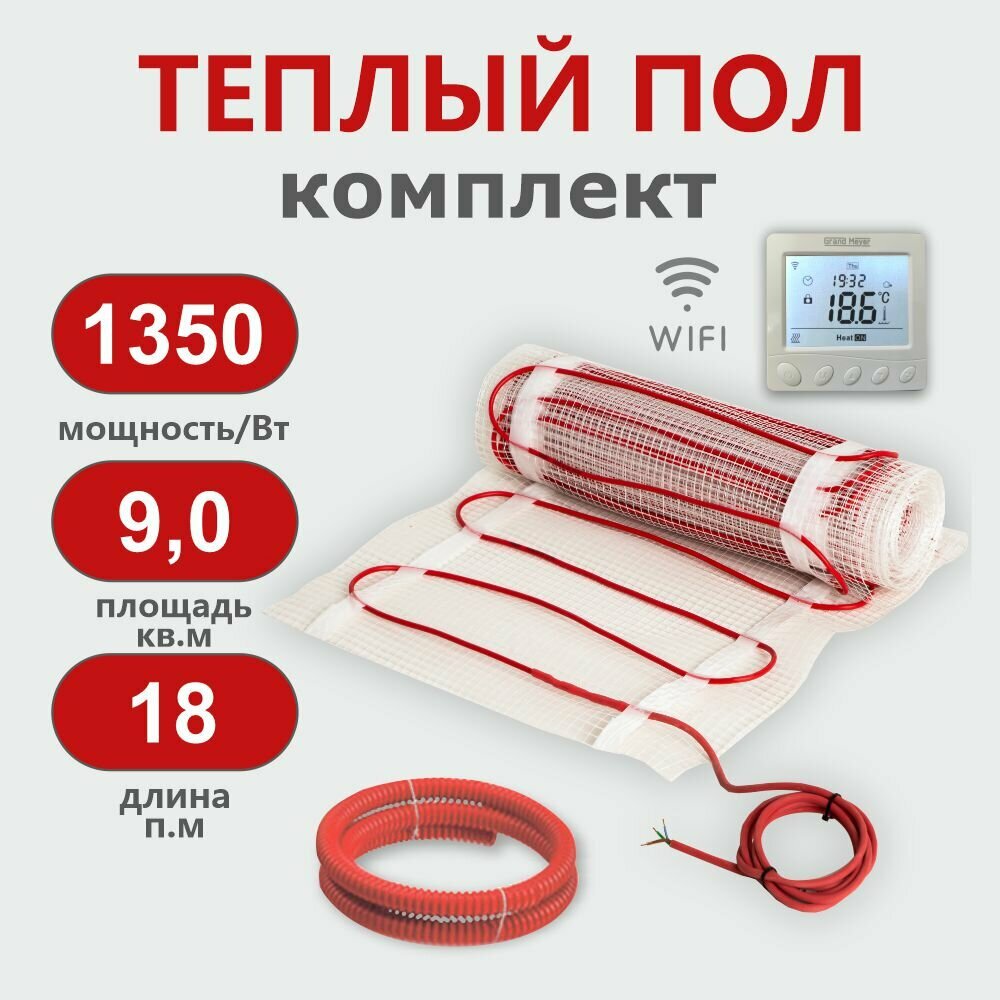 Нагревательный мат КМ - Light 9 м2 с Wi-Fi терморегулятором