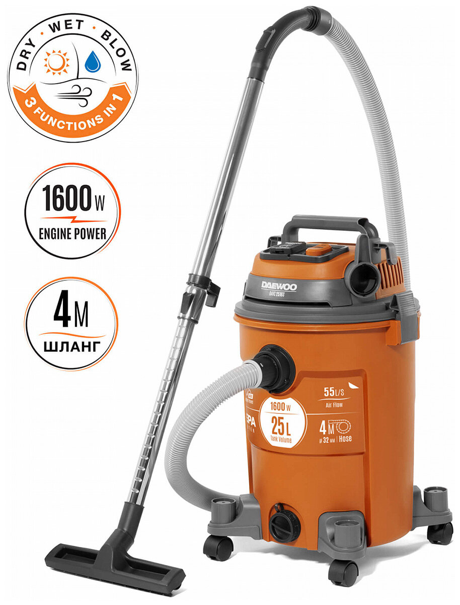 Пылесос строительный DAEWOO DAVC 2516S (1.6кВт, 25л)
