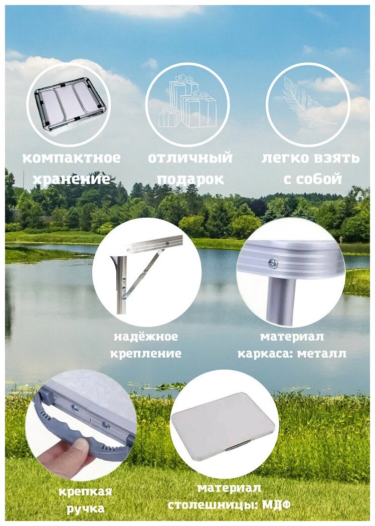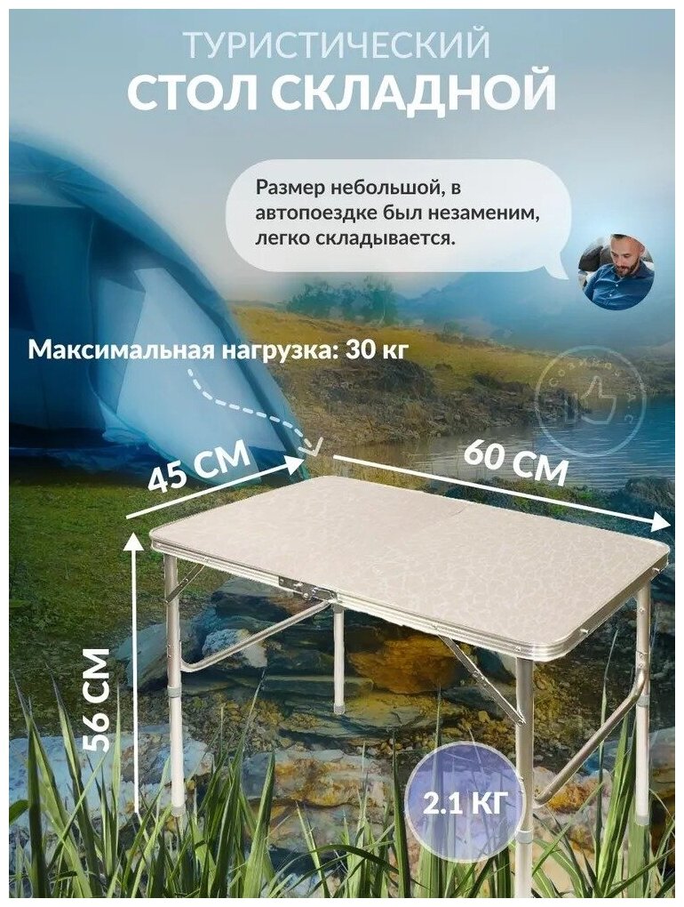 Стол для пикника складной, алюминиевый каркас 60*45*56 см, легкий. интересное: