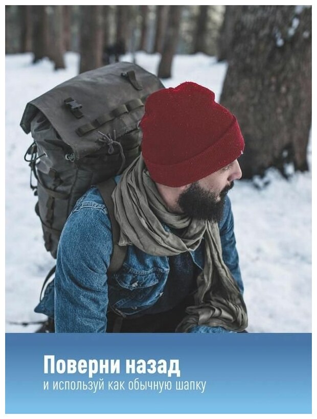 Шапка с фонариком 215х205х5 красн. (фонарь 66х50х15мм снимается; аккум. 3.7В/200мА.ч) 3 режима свечения Космос KOCHat_red