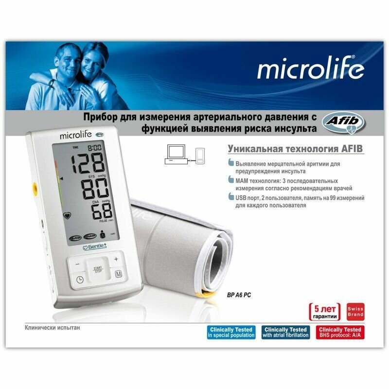 Тонометр Microlife BP A6 PC автоматический с функцией выявления риска инсульта