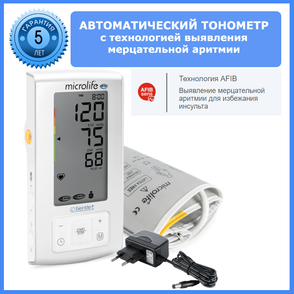 Тонометр MICROLIFE BP A6 PC, автоматический + адаптер