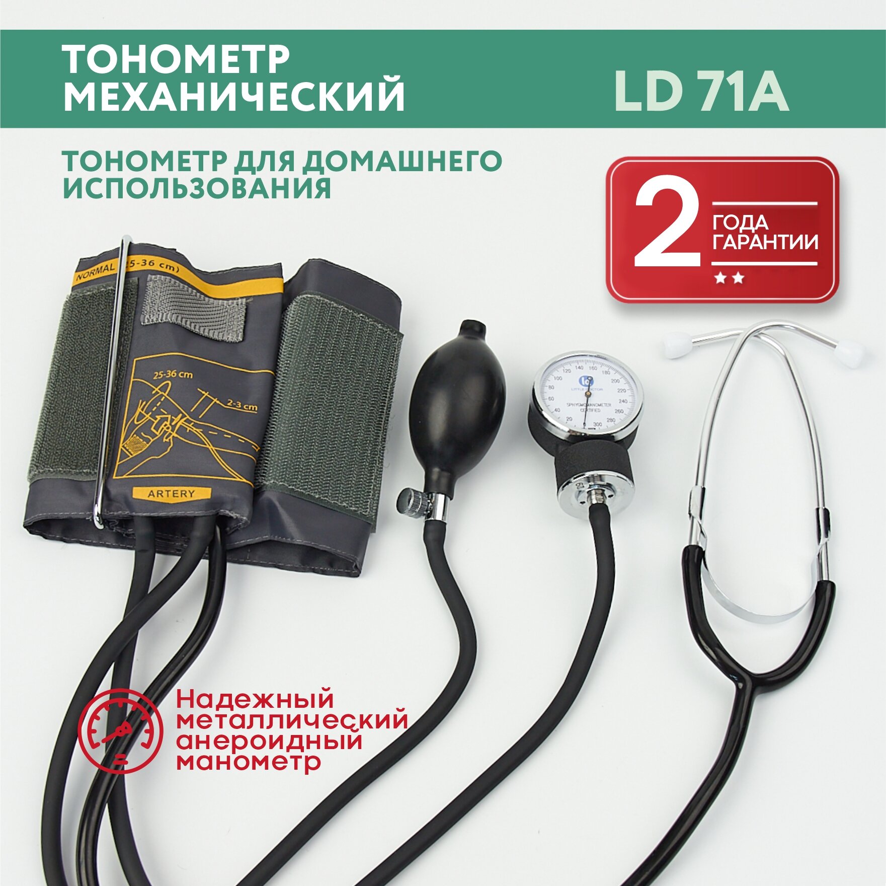Тонометр механический LD-71А со встроенным в манжету стетоскопом Little Doctor/Литл Доктор