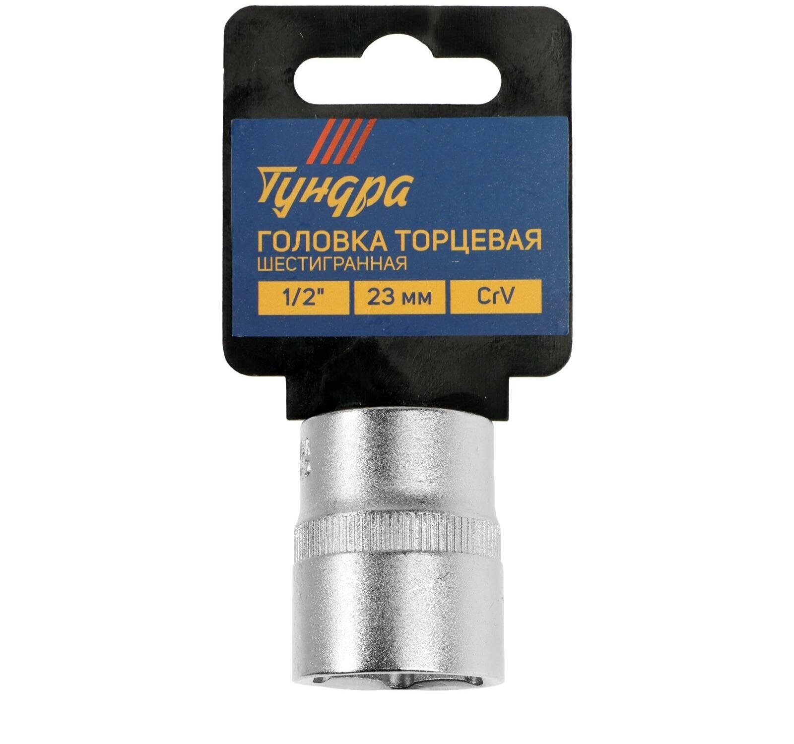 Купить Головка торцевая шестигранная тундра, под квадрат 1/2", 23 мм, CrV