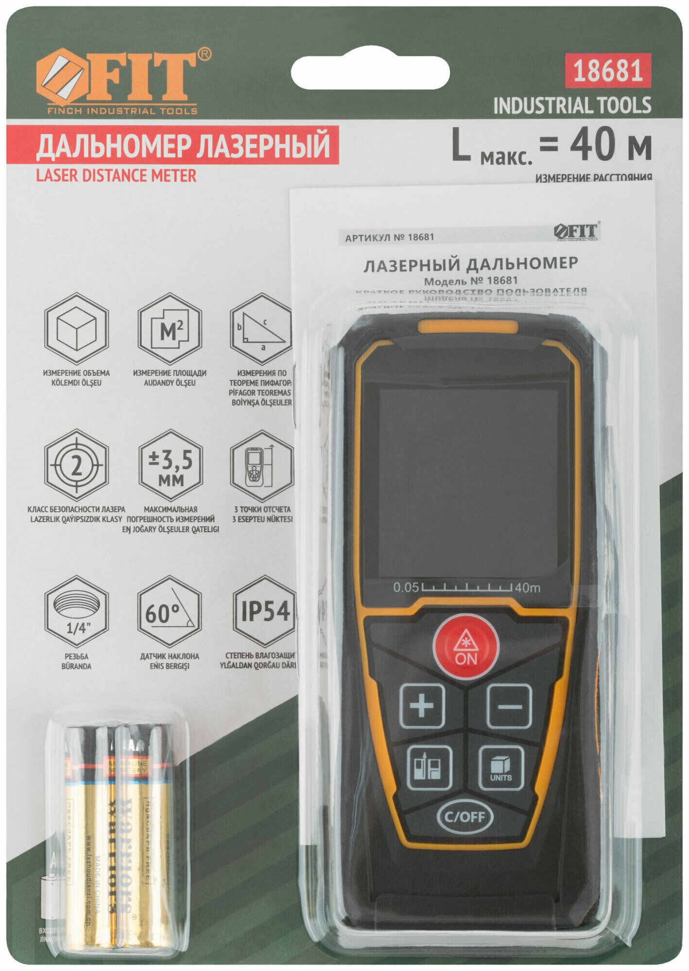 Fit Рулетки, мерные ленты Дальномер лазерный, расчет площади объема, LCD дисплей, диапазон 40 м 18681